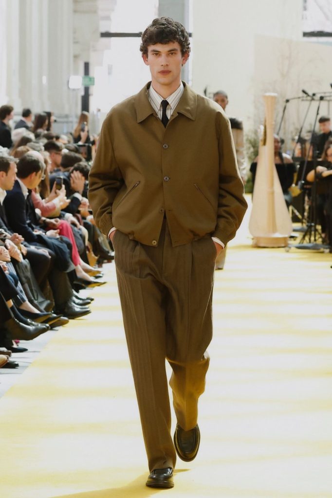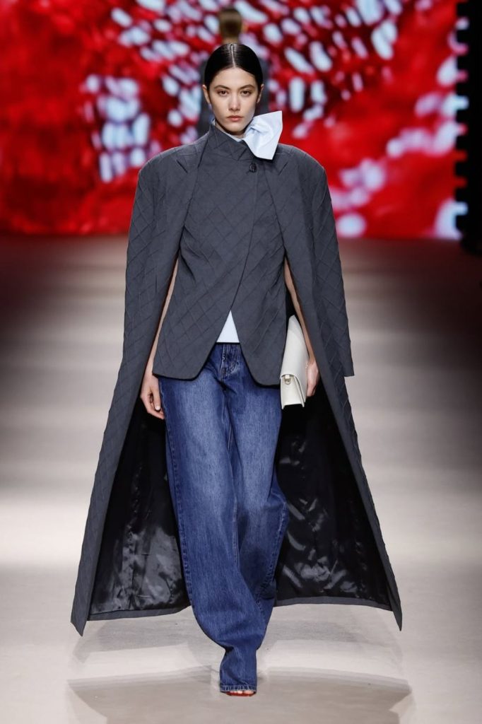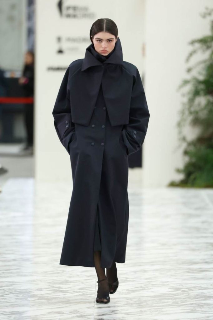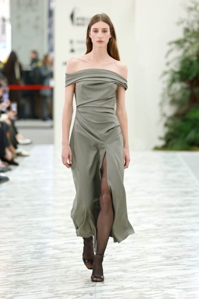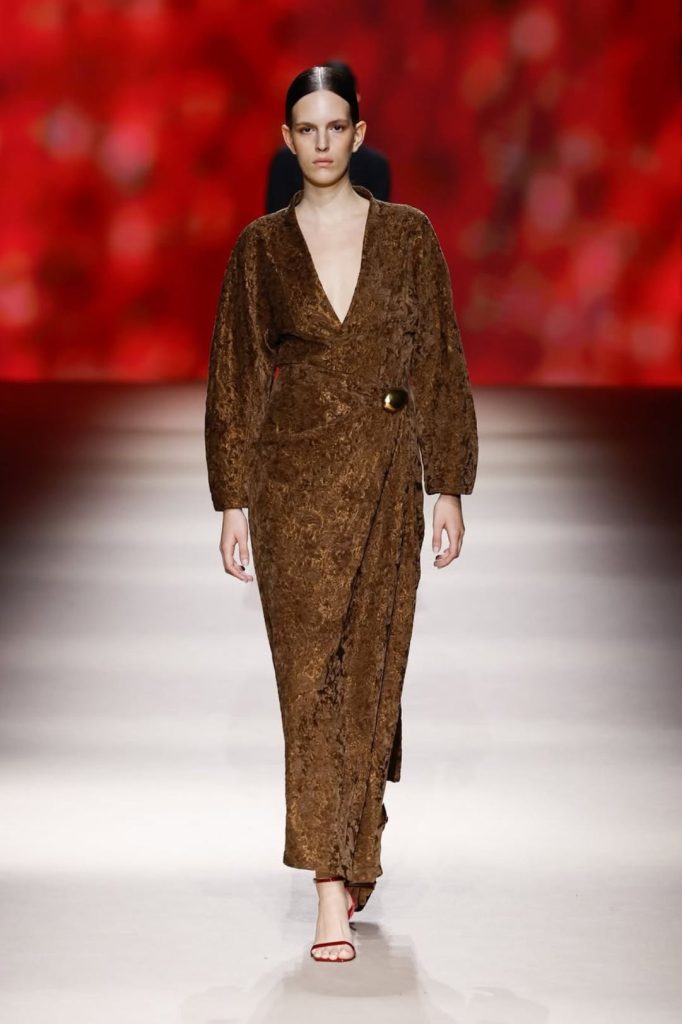 En las salidas vimos modelos llevando vestidos y pantalones combinados, perfectos para la mujer moderna que lo hace todo sin perder estilo. Entre los momentos clave destacaron los abrigos largos hasta el suelo, camisas transparentes, minifaldas y un lenguaje minimalista. Los colores verdes y marrones predominan en las prendas, con toques de azul y dorado.